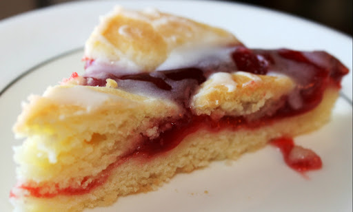 This cake is actually a slice since it's done in a shallow sheet pan and can technically be sliced into a million pieces but I still like to call it a cake - and I like to eat it like a cake too....and maybe even with some ice cream. However you choose to serve it, this dessert is quick and easy and goes a long way. This recipe calls for cherry pie filling but you can use apple, blueberry, strawberry-rhubarb- just about anything goes.