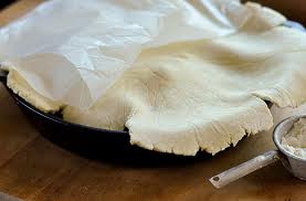 Wrap the dough with the plastic wrap, flatten it into a disc (or discs) and refrigerate for at least 45 minutes, preferably overnight. (For a pie shell and lattice, divide it in a ratio of two thirds:one third — use about 9.5 ounces for the shell and the rest for the lattice, flattening the smaller part into a rectangle.)