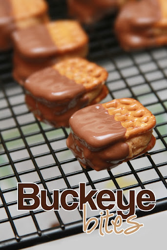 Now, dip your little peanut butter sandwiches 1/2 way into the chocolate. Then place on foil/waxed paper to dry, or place on baking rack.