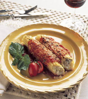 For a lighter version of this dish, use savory crepes instead of the store bought, dry manicotti.