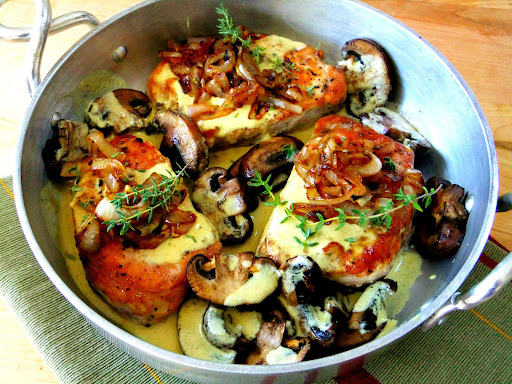 Boneless Pork Chops in Creamy Mustard Thyme Sauce