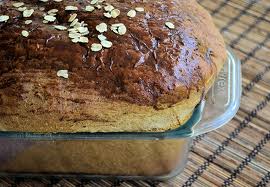 Bake bread 10 minutes; reduce temperature to 350°F. Bake 25 minutes longer. Brush top of bread with glaze; sprinkle 1 tablespoon oats over. Bake until bread is golden and sounds hollow when tapped on bottom, about 10 minutes longer. Transfer to rack; cool in pan 10 minutes. Turn out brad onto rack; cool completely. (Can be made 2 weeks ahead. Wrap tightly in foil and freeze. If desired, reheat wrapped bread in 350°F oven about 15 minutes.