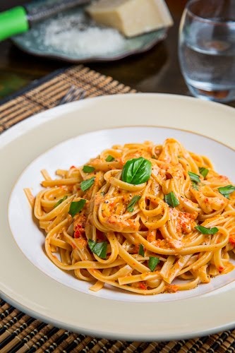 Roasted Red Pepper and Goat Cheese Pasta Alfredo