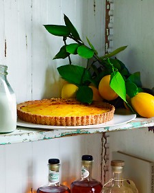Preheat oven to 375 degrees. Make the crust: Whisk together flour, sugar, 1/2 teaspoon salt, and the lemon zest in a large bowl. Cut in butter with a pastry cutter or your fingers until dough begins to hold together.