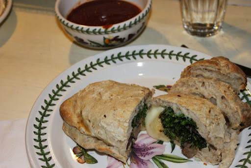 8.After all 4 calzones are made, coat hands with olive oil and rub over calzones. Place on cookie sheet.