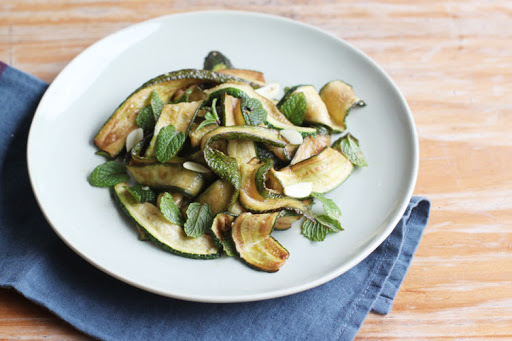 Place the zucchini in a container (preferably with a lid, for keeping in the fridge) and pour the vinegar over it, then add the mint leaves and (if using) the sliced garlic. Combine well and cover. Keep in the fridge for at least a few hours before eating – it's even better left to sit overnight. This dish keeps well, covered and stored in the fridge, for about a week.