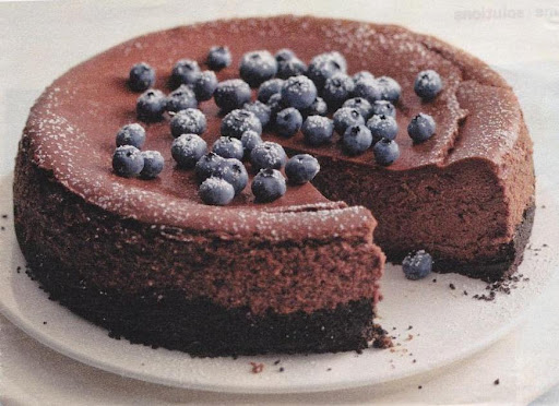 Pour over crust. Bake 55 minutes to 1 hour or until center is almost set. Run knife around rim of pan to loosen cake. Cool before removing rim. Refrigerate 4 hours. Top with berries just before serving. Sprinkle with blueberries and powdered sugar.