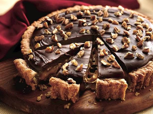 Heat oven to 350°F. In large bowl, stir cookie mix, butter, water and egg until soft dough forms. Stir in 1 cup pecans. Press dough in bottom and up sides of ungreased 9-inch tart pan with removable bottom. Bake 19 to 21 minutes or until light golden brown. Cool 10 minutes. Meanwhile, in medium microwavable bowl, microwave caramels and 1/3 cup cream on High 2 to 4 minutes, stirring twice, until caramels are melted. Stir in 3/4 cup pecans. Spread over cooled crust. Refrigerate 15 minutes. In another medium microwavable bowl, microwave chocolate chips and 1/3 cup cream on High 1 to 2 minutes, stirring every 30 seconds, until chocolate is smooth. Pour over filling. Sprinkle with 1/4 cup pecans. Refrigerate 2 hours or until set. To serve, let stand at room temperature 10 minutes before cutting. Store covered in refrigerator.