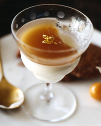 Shawn McClain tops his cinnamon-and-vanilla-flavored panna cotta with an elegant apple-cider gelée. He equates the dessert to a Creamsicle because it successfully combines creamy and tangy flavors.