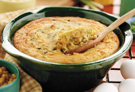 Spoon batter into prepared baking dish. Bake until set, about 45 minutes. Serve immediately.