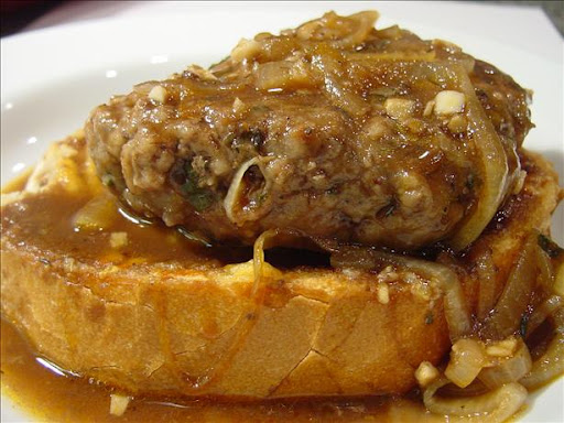 We make this quite often...perfect for company! I use Ciabatta bread cut into squares and broil Swiss and Parmesan cheeses on top before putting the Salisbury steak on top. What would we do without Cooks Country??