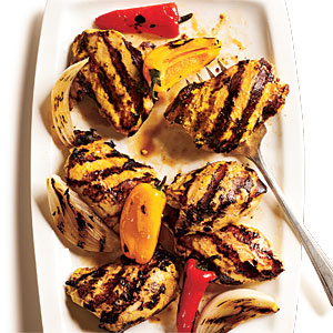 3. Brush grill rack with oil. Arrange chicken on grill rack. Grill 6 minutes on each side or until done.