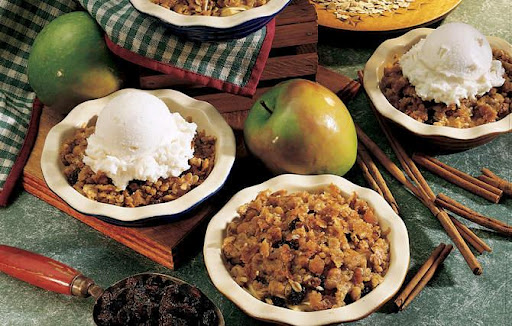 Sprinkle over the apple mixture. Bake for 25 minutes or until apples are tender and topping is golden brown. Top each with a scoop of ice cream. Serve warm.