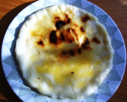 3. Form 4 small balls with the dough. Place each ball between 2 plastic bags and with a flat pot cover flatten to ¼ inch.