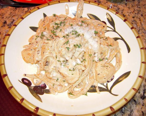 Place chicken and Cajun seasoning in a bowl and toss to coat. In a large skillet over medium heat, sauté chicken in butter or margarine until chicken is tender, about 5 to 7 minutes. Reduce heat add green onion, heavy cream, tomatoes, basil, salt, garlic powder, black pepper and heat through. Pour over hot linguine and toss with Parmesan cheese.
