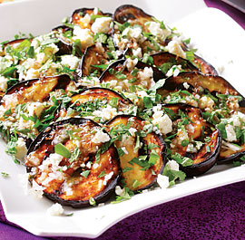 Grilled Eggplant with Garlic-Cumin Vinaigrette with Feta and Herbs