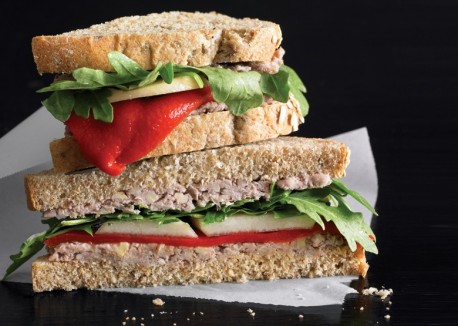 3. To make Sandwiches: Spread each of 8 bread slices with 3 Tbs. Walnut Pâté. Top each with red bell