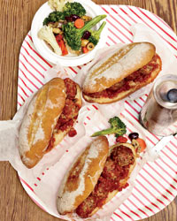 Neal's Deli serves tender, oversize pork-and-beef meatballs stuffed into a warm hero roll with melted provolone cheese. Although Matt Neal makes his own chunky tomato sauce for the sub, it's fine to substitute six cups of jarred sauce.