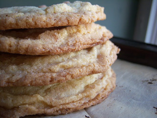 They puff up nice in the oven and then sink down on themselves, which creates little folds and wrinkles in the cookies. The golden edges are a bit crispy and then it's pure chewiness covered in a super-thin sugar-cinnamon crust.