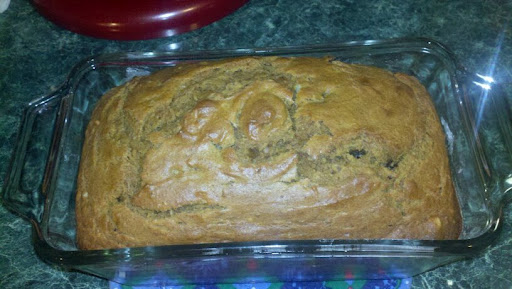 3. Pour batter into prepared loaf pan. Bale 60-65 ,minutes, or until toothpick inserted in center comes out clean. Cool for 10 minutes in pan on a wire rack. Remove from pan & cool thoroughly on wire rack. Wrap & store overnight before slicing.