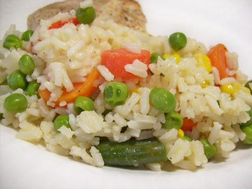 * Briefly heat veggie mix in microwave and sprinkle over rice. Cover and let steam until serving time.