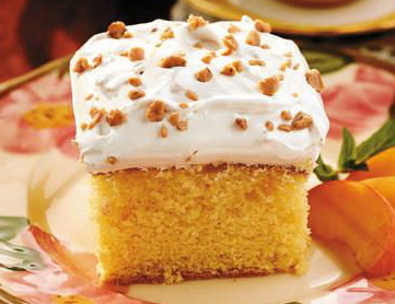 For cake, preheat oven to 350°F. Grease and flour a 13 × 9-inch baking pan.