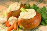 Scoop out one bread to create a bowl. Place dip in bread bowl.
