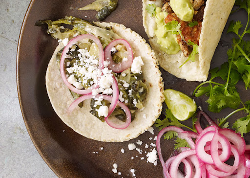 This creamy, smoky filling of roasted poblano chiles and charred onions will make your vegetarian–and carnivorous–friends happy.