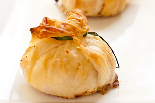 Don’t underfill the purses. Underfilling will create too much of a “poof” on top of the purse – one that will get droopy in the oven and fall over sideways before it has time to crisp. It happens. Same great taste, but less impressive presentation.