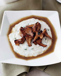Douglas Keane and his mother, Kathryn Douglas, occasionally hunt for mushrooms together on the Sonoma Coast in California. After one of their more successful foraging trips, she came up with this earthy recipe while cooking for Keane and his brother. Keane describes it as one of the most satisfying dishes he has ever eaten because the brilliant sherry broth adds a sophisticated twist to one of his favorite comfort foods, creamy grits.