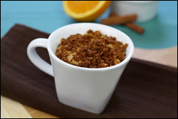 Sprinkle crumb mixture over the cake mixture. Microwave for 1 minute and 45 seconds, or until set. Enjoy!