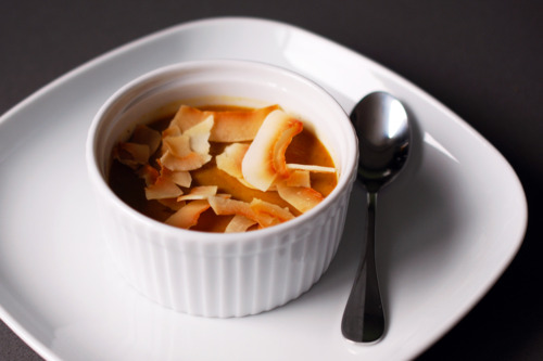 These custards taste great cold, too. Refrigerate the ramekins and top with toasted coconut right before you devour them.