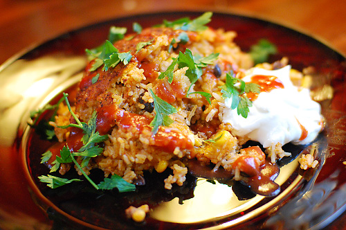 Feel free to add beans if you like them… no need to drain. Mix cooked rice together with tomato/onion/garlic mixture.