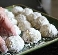 Cream sugar and butter, add other ingredients. Roll into balls, bake at 375º til lightly browned, about 10 to 15 minutes depending on size of balls, just keep an eye on them after about 10 minutes. Roll in powdered sugar.