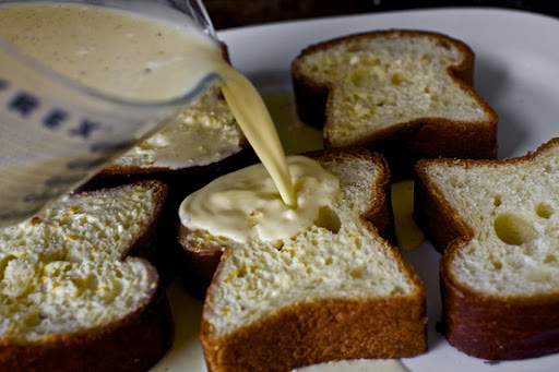 Cut bread into 1 1/2-inch thick, generous slices; a 9-inch loaf should yield 6 slices.