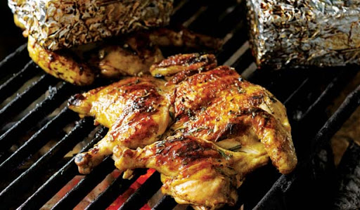 * Spray the bottom of the panini press with the nonstick cooking spray. Place the bird, skin side up onto the press, pray the skin side with non-stick cooking spray and close the lid. Top the press with a 10-pound weight and cook for 8 to 10 minutes or until the skin is golden brown.