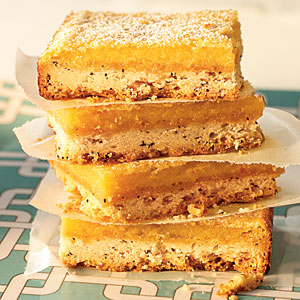 4. Remove crust from oven; pour filling onto hot crust. Bake at 350° for 23 minutes or until set. Cool in pan on a wire rack for 30 minutes. Remove from pan by lifting foil. Remove foil; cut into 16 bars. Sprinkle bars with 1 tablespoon powdered sugar.