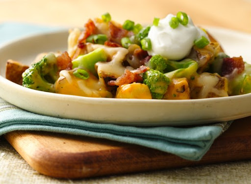 All the flavors of loaded baked potatoes in an easy main-dish meal.