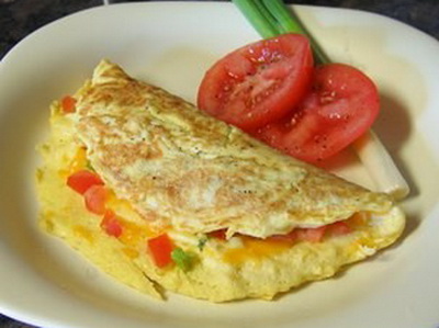 4) Never use milk in the egg mixture. Use only water. Milk makes the omelet watery since it will not blend with the eggs. Water blends and helps keep the omelet fluffy.