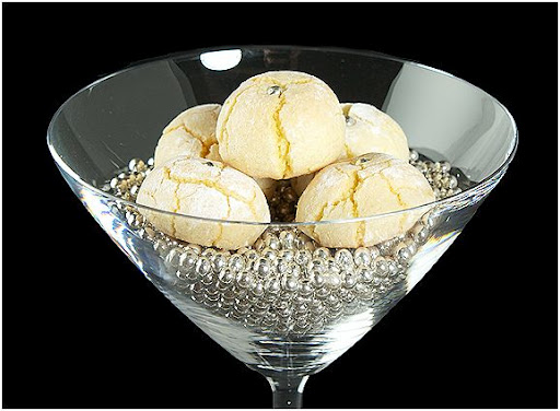7.Roll amaretti dough into 13 g (½-ounce) balls, coat in confectioners’ sugar and place a dragée in the centre. (Do not flatten cookies). Roll 20 amaretti cookies per baking sheet. Chill dough in between baking times.