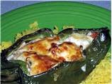 While using gloves, wash the poblano chilies and using a sharp paring knife, cut a slit lengthwise from stem to tip of chile leaving stem in tact. Carefully cut away the seeds and membrane rinse the inside of the chilies and set aside. In a large skillet over medium high heat, warm 1 tablespoon of the olive oil, add chopped onions and garlic. Cook until onions begin to turn golden, stirring frequently. Add the diced chicken, sprinkle with seasoning salt and cook until chicken is almost cooked through; add tomato and mushrooms, continue to cook until chicken is done. Preheat oven to 350 degrees and spray a 2 quart casserole dish with non-stick cooking spray. With remaining tablespoon olive oil, lightly oil the outside of the chilies and place them cut side up in casserole dish. Pack the chicken mixture into chilies and push cheese into mixture along the slit. Cover dish, place in preheated oven and bake for 35 to 40 minutes; remove cover the last 5 to 10 minutes of cooking. Serve on top of a bed of saffron rice.