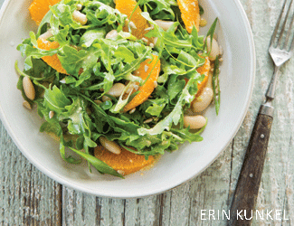 2. In a large bowl, toss together arugula, cannellini beans, oranges, and scallions.