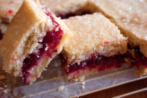So, is it a cake…or is it a cookie? For me, it definitely reminded me of a bar cookie. The shortbread portion is wonderfully buttery without being overly greasy, and is wonderfully soft and chewy. The cranberry middle was so yummy – tart, but not too much, and it helped to balance the richness of the shortbread. Cake, cookie – it doesn’t matter to me. This dessert was fantastic and is definitely repeatable! I’m looking forward to trying this with different fillings, and perhaps adding some spice to the shortbread dough.