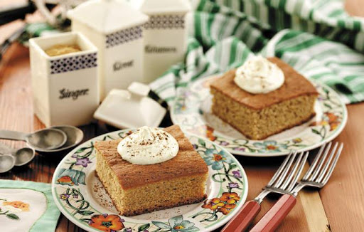 Cut into squares. Top each serving with whipped cream. Sprinkle with nutmeg, if desired.