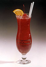 Shake all ingredients in a cocktail shaker with ice and strain into a Hurricane glass filled with ice. Garnish with a cherry and an orange slice.