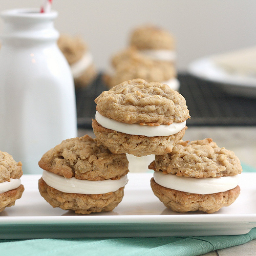 Match the cookies in pairs by size. Transfer the filling to a piping bag and pipe about 1 tablespoon onto the flat side of one cookie of each pair. Sandwich the cookies together, and press the filling to the edges.