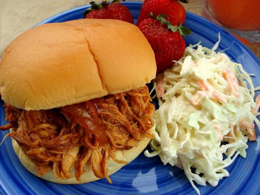 Shred the chicken with a fork and knife; scoop the mixture onto the bottom buns and top it with the top buns.