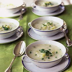 1. Put potatoes, leeks, salt to taste, and 8 cups of water in a large saucepan over medium heat and simmer, partially covered, until vegetables are tender, 40–50 minutes.