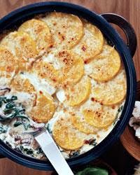 Commercial wild mushroom mixes (usually a combination of shiitake, cremini and oyster mushrooms) are a godsend: Some invisible helper has already cleaned, stemmed and sliced the mushrooms for you. In this recipe, they are mixed with spinach and cream, then baked in a luscious gratin under smooth rounds of precooked polenta until bubbling hot.