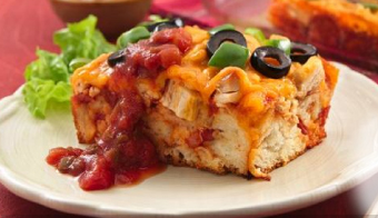 - 3 BAKE at 375°F 35 to 40 minutes or until edges are deep golden brown and center biscuit pieces are no longer doughy. Let stand 15 minutes. Serve with additional salsa, if desired.